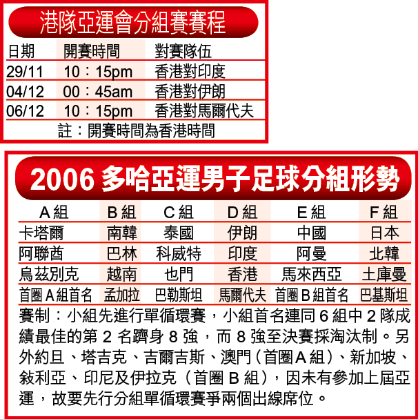 港隊在亞運足球賽被編在D組,同組有伊朗、印度及馬爾代夫;「黎祥」指出,伊朗是亞洲頂級球隊,應穩奪此組出線資格,而港隊與印度及馬爾代夫實力接近,能否出線的關鍵在於首戰,能否在印度身上全取3分。