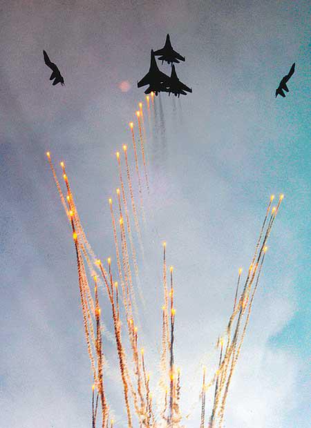 第六屆珠海航展昨日首天開放給專業人員進場參觀,場面熱鬧。儘管主辦單位強調要做到飛行安全萬無一失,但前日下午「俄羅斯勇士」飛行表演隊,進行試飛及綵排期間,一度有麻鷹飛近會場上空,還差點撞向其中一架蘇-27戰機,險些釀成慘劇。