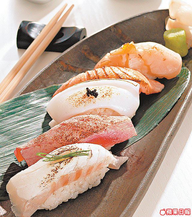 以火略燒的壽司拼盤是受歡迎菜式之一。半生熟口感獨特,味道甘香,最重要是無落調味,仍然可以食出魚生的鮮味。