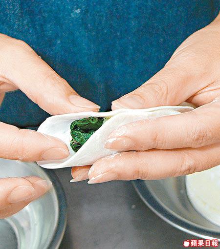 材料︰XO醬2茶匙、白菜6両、豬肉碎2両、葱1棵(可隨個人口味加減)、餃子皮20片