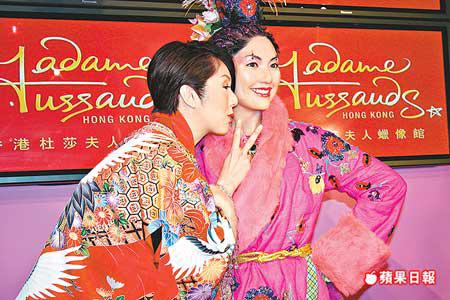 楊千嬅的蠟像昨天進駐山頂的香港杜莎夫人蠟像館,其服飾參照早前演唱會「楊門女將楊八妹」的造型,而且還是全球首個會發出笑聲的蠟像。千嬅表示除花了很長時間度身倒模,還灌錄了一段近1分鐘的笑聲,大會更會不時為其蠟像噴上她常用的香水。