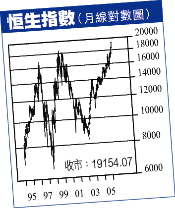 為了搶在旺熱的股市未消失前出版這本新書,我沒有進一步詳細再做實驗,只簡單的將過去20年的對數恒指畫上迴歸線。