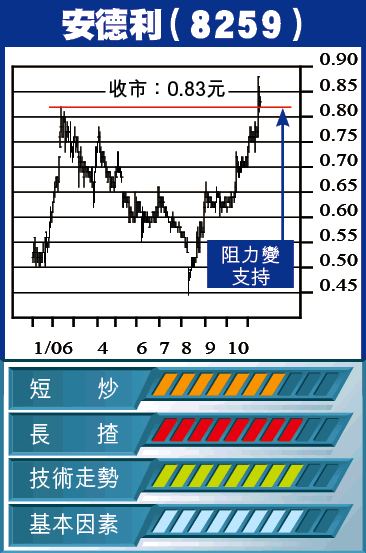 經過今年上半年的行業低潮後,安德利果汁(8259)盈利已回升,由10月開始,股價亦由0.65元上到近日最高的0.88元。