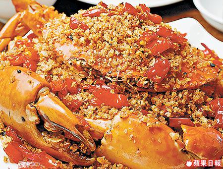 以斤幾重大青蟹,以亁葱、蟹油及蒜茸等炒香;蟹身膏脂唔多,但蟹肉味濃,火候剛剛好,入味又肉嫩。