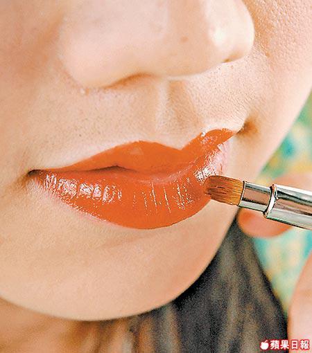 1.如唇形薄,可先以同色唇筆勾畫唇形,再以唇掃將邊緣暈開,填上唇膏。