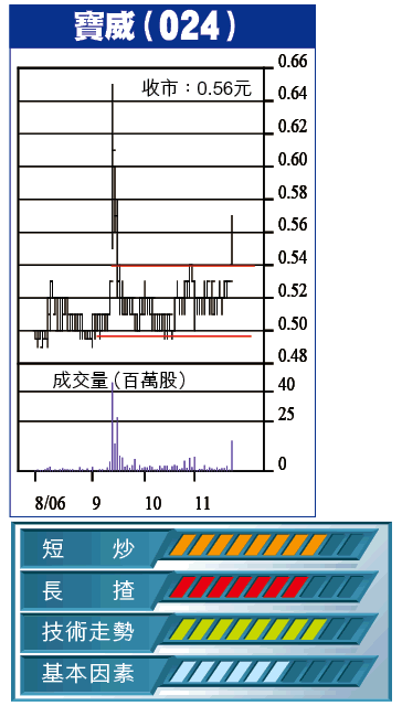 另外,寶威在揚州的時代廣場大型商場,出租率100%,年租金收入2000萬元。中期結算日,寶威股東權益10.14億元,每股NAV0.98元,股價折讓逾4成,偏低得不合理。