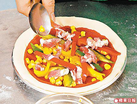 餡料:茄膏/粟米/青椒絲/菠蘿/煙肉/Mozzarella芝士各適量(餡料可隨個人口味而改變)