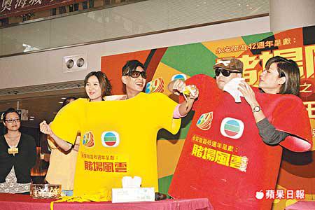 黃宗澤、宣萱、歐陽震華(Bobby)和李亞男等昨日在奧海城,宣傳無綫劇集《賭場風雲》,還跟台下觀眾大玩遊戲,其中黃宗澤跟歐陽震華玩啜乒乓球,玩到啜嘴,之後邀請現場觀眾上台,要他們示範戲中苗僑偉跟宣萱的親嘴戲,當Bobby跟宣萱親嘴時,竟十分抵死地將活動貼紙貼在嘴上,登時令宣萱捧腹大笑。