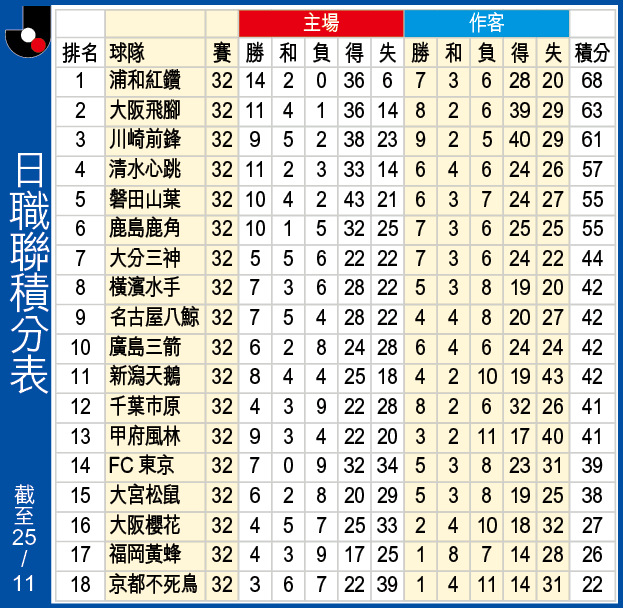 今屆日職聯只餘兩輪比賽,要是榜首浦和紅鑽周日從FC東京贏波而回,即初嘗冠軍滋味,熱捧1.48倍的紅鑽客W,兼博兩隊大手交易開入球「大」。