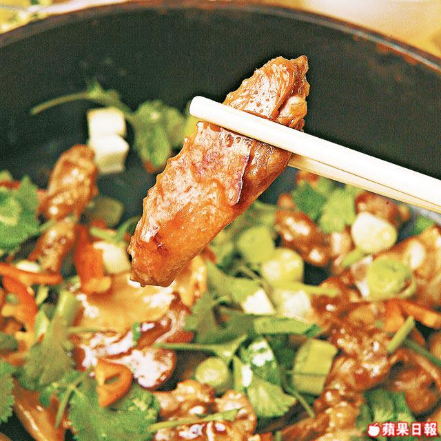 做法:葱切粗粒,紅辣椒切絲留用。起乳鴿脯後(即起骨切件)醃3分鐘,然後以沙薑及陳皮起油鑊,用慢火把鴿煎至金黃色,最後加入葱粒、芫荽及辣椒絲略兜一下即可。