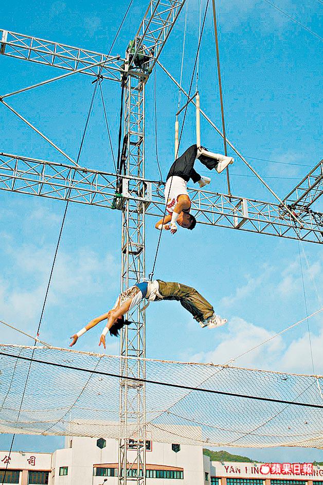 錢嘉樂昨日取笑坐在鐵架上的黃德斌,他說:「黃德斌身形咁弗,應該未入行前係搭棚㗎!」Yumiko則於綵排時笑料百出,除了失手跌落安全網擦傷右手臂外,錢嘉樂原本需在空中捉緊Yumiko雙腳,可惜最後只捉到Yumiko褲腳,令Yumiko大叫怕甩褲。