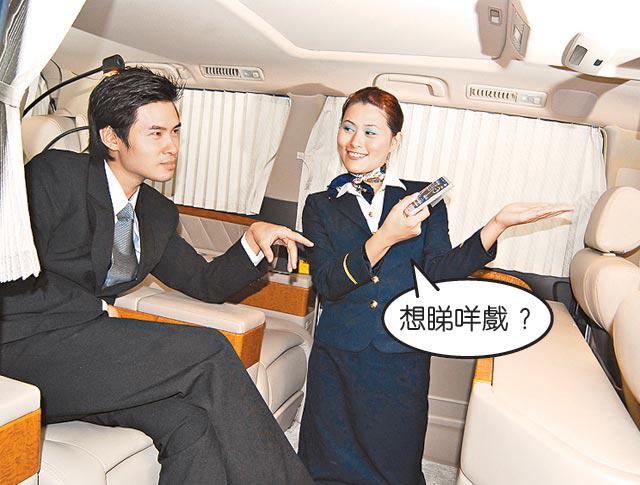 完成手上的工作,最好當然是觀賞心愛的電影來輕鬆一下;乘客可透過手上的遙控器來選擇喜歡的電影,並利用設於車頂的屏幕觀賞;若我們提供的電影選擇未能迎合閣下口味,可召「機艙服務員」利用設於駕駛艙內的輕觸式音響組合,更換閣下帶來的DVD影碟。至於設在座椅前方的儲物櫃,上層可擺放隨行物品,而下層則是小型雪櫃,能照顧不同乘客需要。