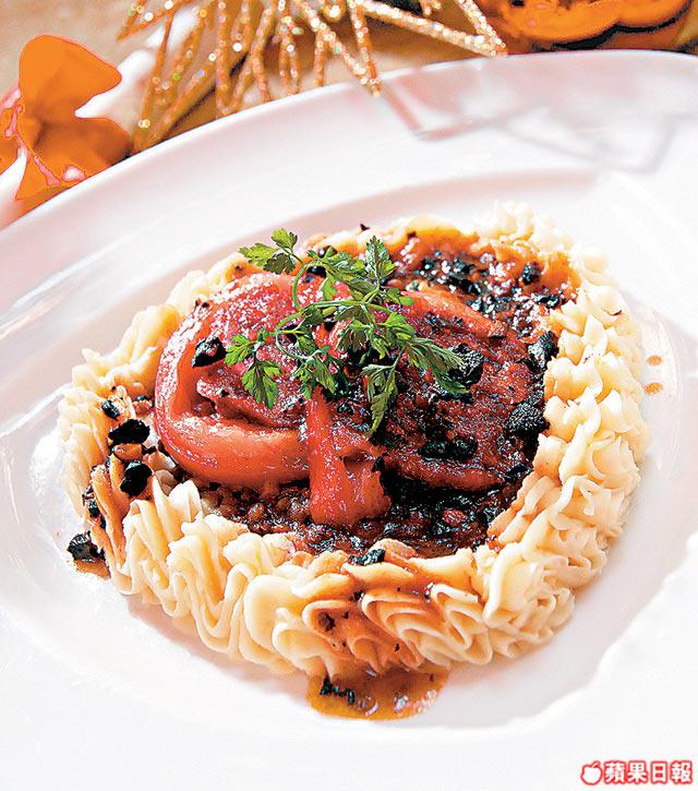 意式豬蹄卷配黑菌汁焗扁豆薯茸$168