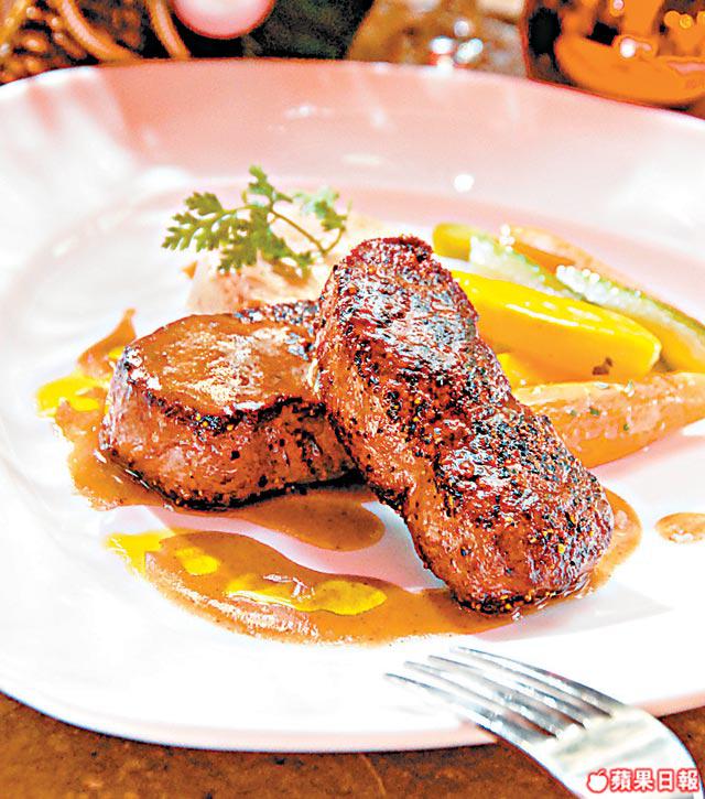 胡椒煨黃麖伴意大利牛肝菌餡餅及風味醬汁$248