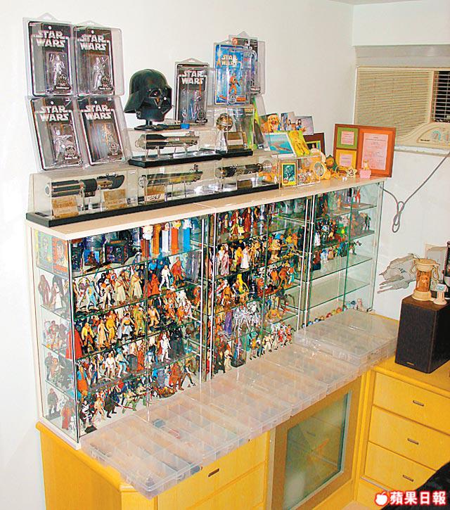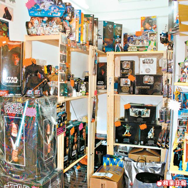 這個世界有兩種收藏家,阿偉說:「有人買了連包裝也不捨得拆;有人卻會立刻開來玩。。。」阿偉顯然屬於前者,因小記見其收藏的書本、影碟都保有原裝封套,連內容也不捨得看,這個「不捨得」會否貴了點?「每月花$2,000購買星戰產品,數目只會有多無少。」不經不覺,放了一整間房子,與家人同住的阿偉都習慣了家人的囉嗦:「人大了,家人都管不了那麼多。」直到今年中,阿偉終於醒覺自己買得太多,show得太遲。於是與友人合資在旺角開了間星戰產品專門店:「旨在清清倉,但自己亦不捨得將某些珍藏放出來賣。」