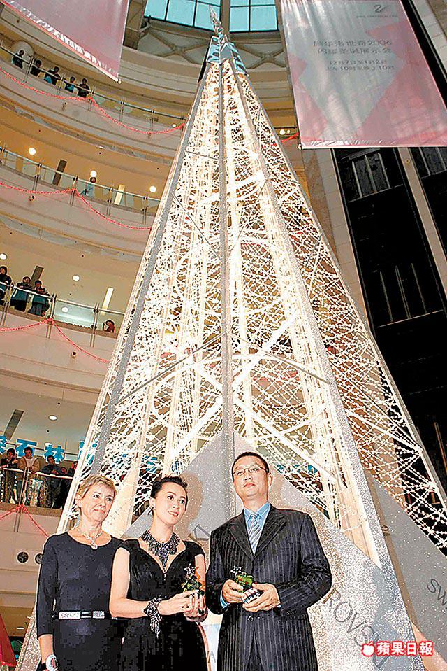 劉嘉玲昨日現身上海港滙廣場,為水晶品牌Swarovski主持聖誕樹亮燈儀式,15米高的巨型仿水晶聖誕樹閃閃生輝,壽星女嘉玲身穿黑色低V晚裝裙,並戴上一套深藍色水晶首飾,打扮雍容華貴,吸引在場近百市民圍觀。