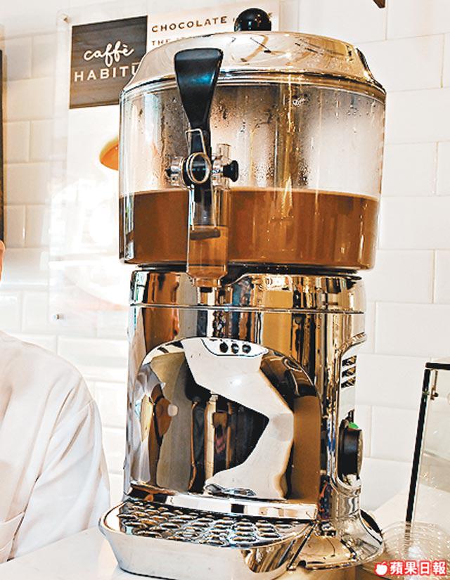 純意大利血統「熱溶朱古力機」,香港僅此一部!較一般Cafe以朱古力漿/粉的分別,是把朱古力維持40餘度,令味道幼細嫩滑,而且同咖啡溫差小,亦令咖啡保持最佳熱飲溫度。