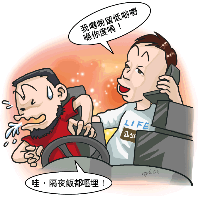 三色台小生「不忠」最近頻頻背妻偷食,仲俾人偷拍到去外國同情婦幽會,但就死口話對方只係朋友。不過呢啲都只係佢嘅片面之詞,事關關仁有個朋友揸的士,早排接載過不忠,佢一上車就打電話,同個女仔淫聲浪語,仲猛問對方:「你記唔記得呀?你噚晚留低啲嘢喺我度,呢,好細條嘅呢?」雖然不忠冇提到嗰樣細件物件係啲乜,但關仁嗰位的士朋友就聽到打晒冷震兼反胃,所以要將佢呢件醜行揚出嚟,等大家唔好以為不忠係好好先生喎。 Textby關仁