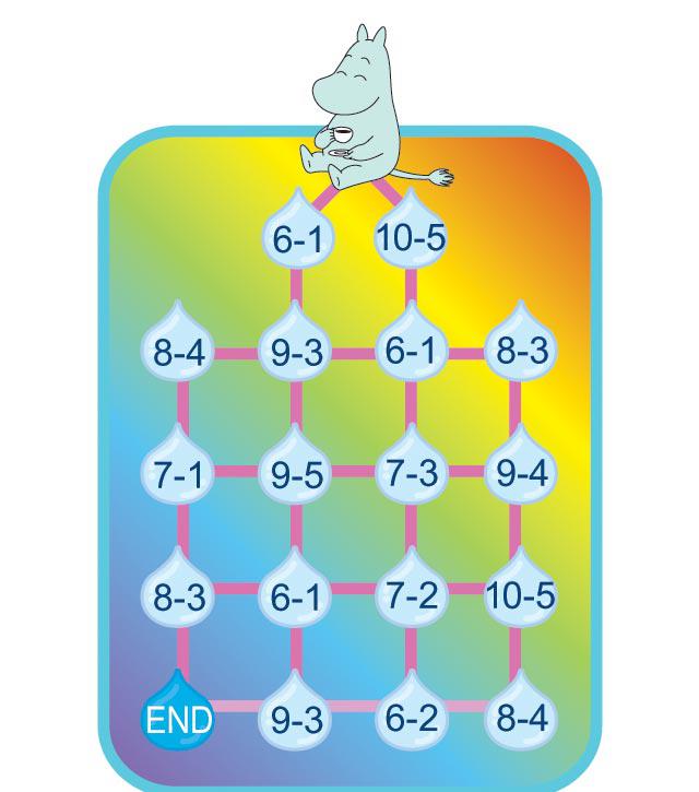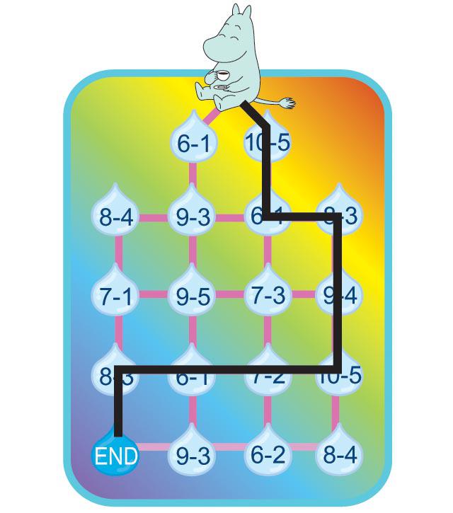 姆明不慎踏入了這個數字迷宮,只要找出答案為5的算式,便能找到應行的路線,你能幫助姆明嗎?
