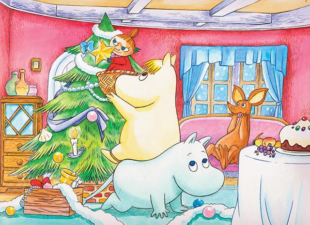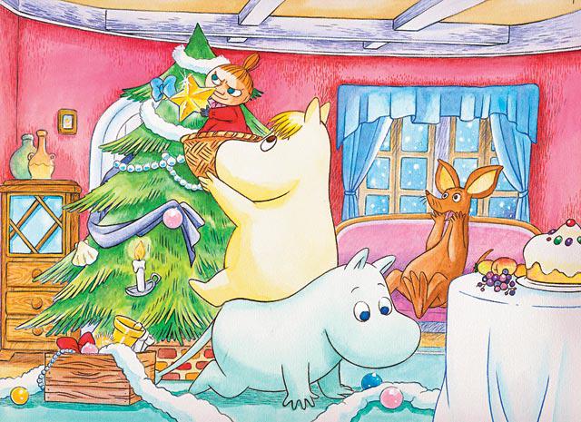 聖誕將至,姆明、歌妮、亞美等人正在布置聖誕樹,你能找出以下兩幅圖中5處不同的地方嗎?
