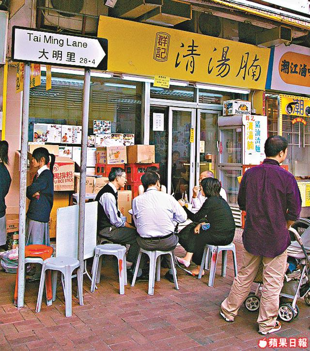 Charmaine同Vincent經過群記清湯腩見到客人多到要坐出門口,又忍唔住入去八吓。一睇餐牌,淨係牛腩都分爽腩同肥腩,仲有牛面珠、牛脷、牛肚、牛筋,甚至牛鞭!呢度最出名牛腩,同中環九記有得揮,好多明星捧場,但係Charmaine同Vincent見到罕有嘅牛面珠同牛脷竟然放棄牛腩,果然識貨!Charmaine一食牛面珠:「嘩!又滑又腍!」Vincent咬住嚿牛脷話:「真係好腍!牛味十足!」飲埋啖湯,「牛味濃而不油膩,好想飲多碗!」但係原來群記不設加湯,另叫淨湯$4一碗。湯底用30斤牛腩牛骨由收工煲至天光,絕不加味精,所以牛味濃郁。