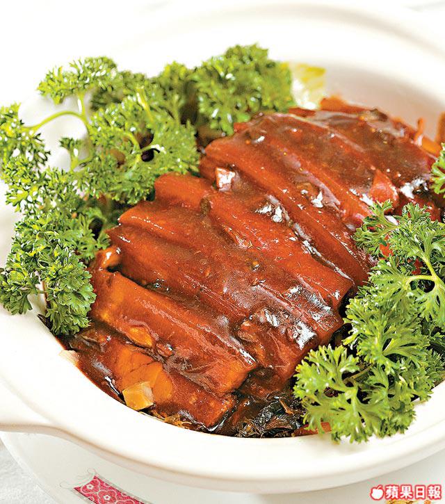 專食懷舊菜的和暢之風,Charmaine同Vincent盲舂舂走咗入大明里的和暢,入到去先知呢間和暢以粉麵為主,要食小菜就行兩步過馬路去運頭街。Charmaine同Vincent八字頭出世,對懷舊菜認識不多,所以請總廚吳師傅發辦。吳師傅炮製了50年代流行菜式北菇鴨汁魚唇,魚唇即是鯊魚的尾部,是去除翅針的魚翅,含豐富蛋白質同骨膠原,𠵱家已經好少地方食到,因為工序繁複。魚唇要放入凍櫃慢慢浸先夠入味,Charmaine知道可以養顏即刻食多兩啖,「魚唇好滑呀!」