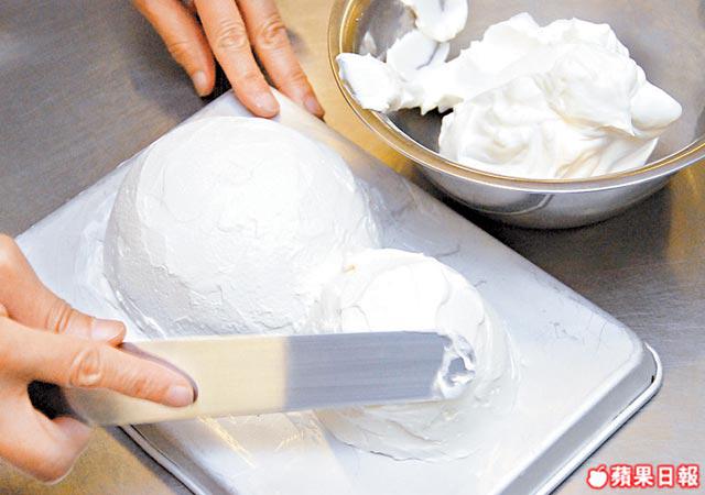 Step3︰取出後在餅面抹上甜忌廉,再撒上椰絲。