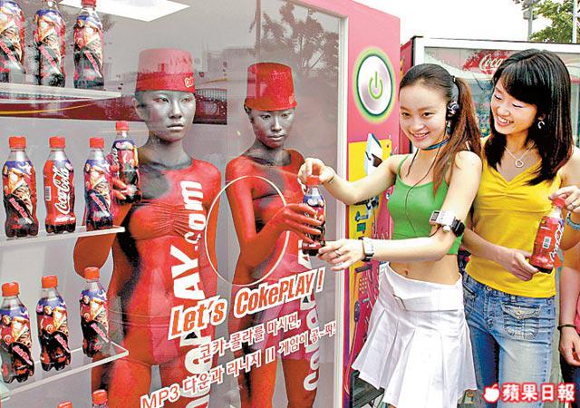 兩年前的可樂宣傳活動中,就以「透視販賣機」為題,安排模特兒作人肉販賣機。