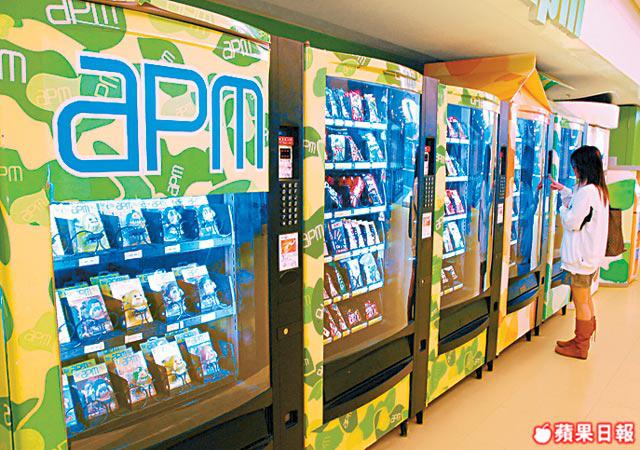 作為全港最集中的自動販賣機就首推觀塘的apm,新鴻基地產代理租務總經理馮秀炎稱,當初商場以19-35歲的年輕人為銷售對象,故在策劃商場時,亦把日本很流行的販賣機文化與扭蛋文化加入商場的規劃中。而且為滿足客人需要,每個月都會作出檢討,如去年的香水機與賣書機,如今已被out出局。來年將計劃推出商場旗下店舖的產品,例如無印良品的零食、馬拉松的可摺叠波鞋等,務求使每個到商場的人,也可以24小時全天候購物。