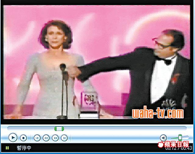 原來該片段是來自1995年一個名為「AmericanComedyAwards」的頒獎禮,經凌零發查證後得知台上的得獎者為美國女星珍美李寇蒂絲(JamieLeeCurtis),曾於電影《真實謊言》(TrueLies)中飾演主角阿諾舒華辛力加(ArnoldSchwarzenegger)的妻子,而頒獎的則是電視影星JonLovitz。