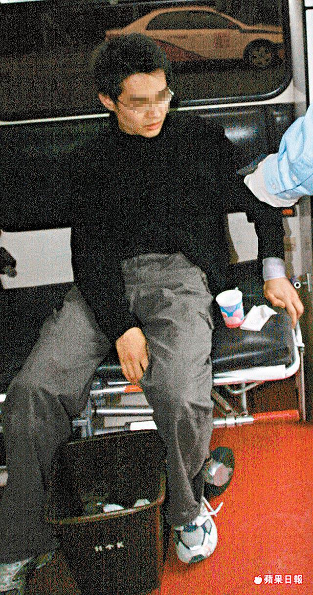 至於涉嫌傷人及行劫的「賤男」姓陳,26歲,他戴眼鏡外表斯文,沒料到會如斯暴戾。警方消息指,陳沒有精神病紀錄,惟最近與女友分手,疑不堪失戀打擊。昨中午12時許,陳行到沙田源禾路近沙田路單車徑城門河邊,坐在休憩處用一柄𠝹刀割左手的手腕自殺,傷口不停滲血;其時,在附近開檔的尹婦見狀,趨前好言相勸。