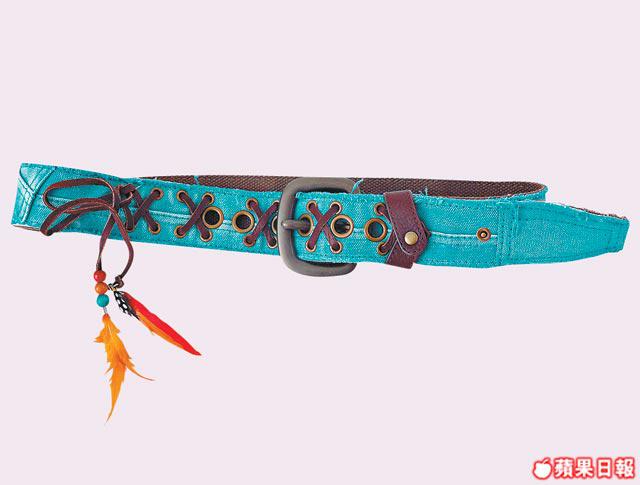 大部份人都愛將皮帶綁在牛仔褲頭上,嫌單調,可將兩條Belt駁長,輕輕穿上兩個褲頭耳圈,在腰間打兩個圈。
