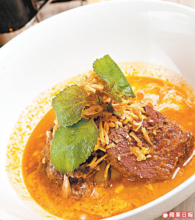 成隻牛的一邊面珠肉只做到一道咁嘅菜;牛面肉有幾分坑腩嘅彈牙口感,但輕咬即開,勁鬆化!配以椰味、甜味勁重嘅紅咖喱,東南亞風味出晒嚟。