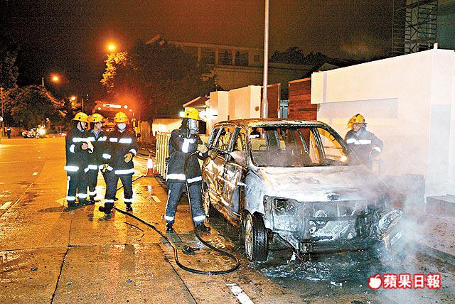 10分鐘後,疑撞閘七人車被途人發現於九龍塘德雲道7號對開着火,消防員救熄火警發現該車頭及車尾損毀,認為有可疑。警方聯絡56歲姓郭車主,他表示該車前晚停泊在粉嶺路邊,至警方通知才知其車被人偷走犯案。