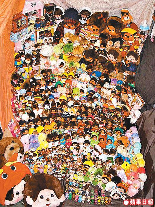 Vincent儲Monchhichi超過20年,與她邂逅於小時候跟嫲嫲去大大百貨公司,看見那可愛眼神,像人一樣的造型就一見傾心。「我記得79年時在萬寧買一隻10吋高的Monchhichi手偶都要90幾蚊,相對起以前人工可能只得千多元來說,實在太貴了。到了80年代初期,開始工作賺錢才愈買愈多。」Vincent的珍藏遍及自己、父母和大哥的家,保守估計超過600件!