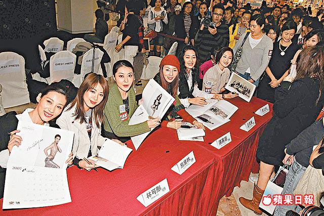 周汶錡、熊黛林、陳嘉容及姚書軼等一班名模昨日在尖沙嘴義賣月曆,為聯合國兒童基金籌款,現場以周汶錡最受歡迎,吸引一批女fans排隊。
