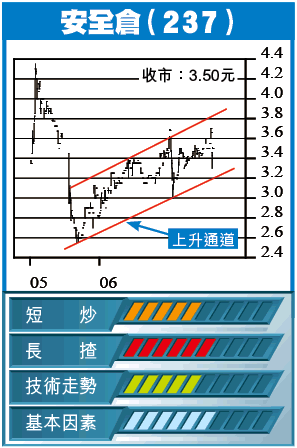 安全貨倉(237)06年3月底結算,股東資金11.36億元,每股資產淨值8.42元。