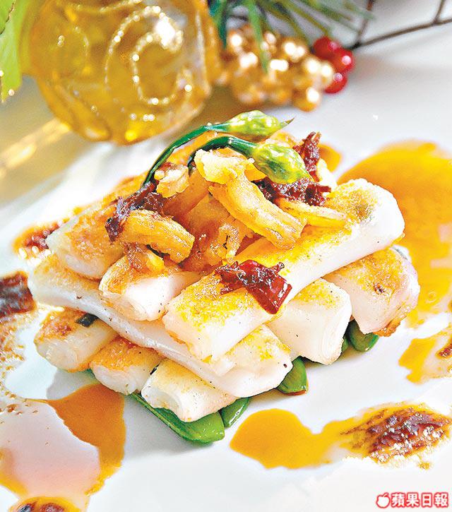 重點在於醬汁,用咗瑤柱、火腿、蝦醬、辣油再加秘製醬油煮個多小時而成,非常惹味!腸粉先煎至金黃色再配埋蝦亁、芽菜及甜豆炒香,外脆內滑。