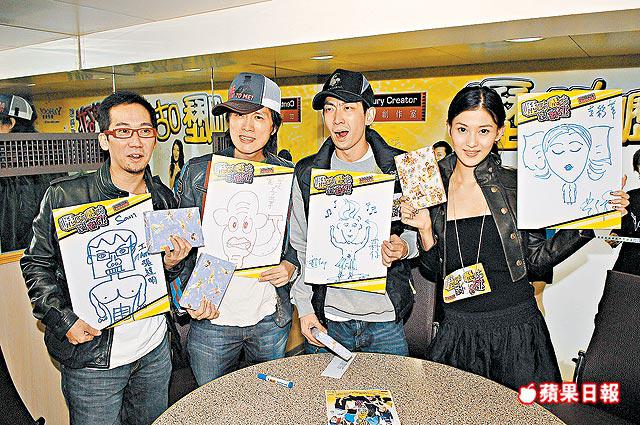 李彩華、黃子華、張達明及李璨琛等前晚在九龍城出席新片《嚦咕嚦咕對對碰》煞科宴,席間眾人互相繪畫對方的樣貌,畫得好的會被製成教人打台灣牌的卡片。