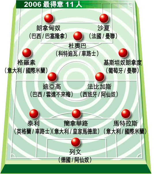 今年我帶領意大利4奪世盃,個人又獲得世界及歐洲足球先生,相信入選本年度「最得意11人」應該冇球迷異議啩,哈哈……至於其餘10人各在球會及國家隊有極大貢獻,故應同時值得入選。