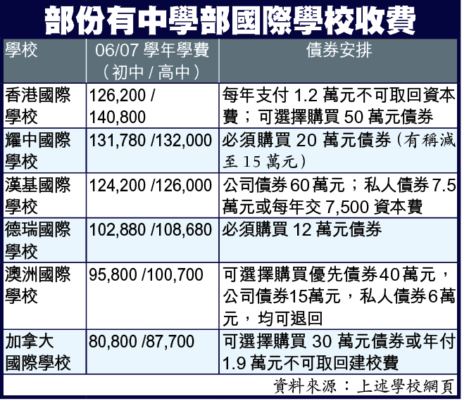 該校家長陳太向本報表示,校方為支付建校費,於今年3月的家長會上,突向他們表示中學部600名學生的家長,必須在明年3月購買每人20萬元債券,令家長嘩然。但當時校方稱會將學費由每年13萬元減至8萬元,令家長有憧憬。