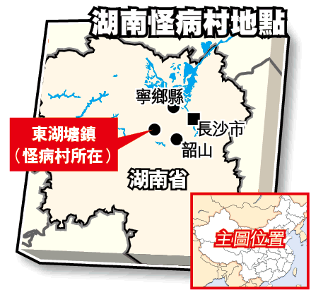 手腳肌肉萎縮,喪失語言及自理能力,直至死亡……這種怪病近年不斷在湖南寧鄉縣東湖塘鎮高峯村蔓延,其中六名患者已相繼死亡。不少村民認為患者被詛咒,感到恐慌,也有村民總結出「死亡名單」,懷疑是因家族遺傳而患上小腦萎縮症,與本港近期熱播的電視劇《一公升眼淚》女主角木籐亞也所患的病相同。