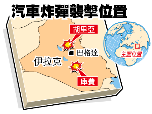 儘管當局高度戒備,在巴格達以南160公里的什葉派城鎮庫費(Kufa)一個魚市場,就遭到汽車炸彈襲擊,造成至少31死58傷。幾小時後,在巴格達附近的胡里亞鎮(Hurriya)也遭三輛汽車炸彈襲擊,造成至少25死65傷。暫時不清楚是否遜尼派發動,但武裝分子明顯是針對慶祝宰牲節的什葉派。