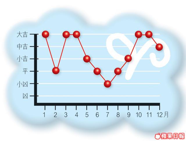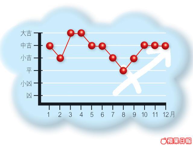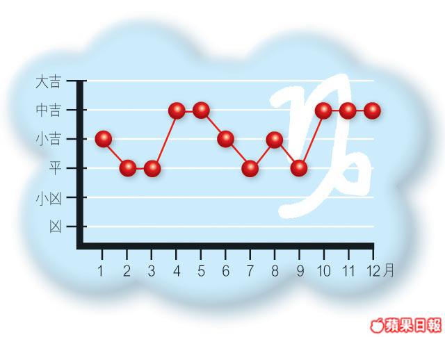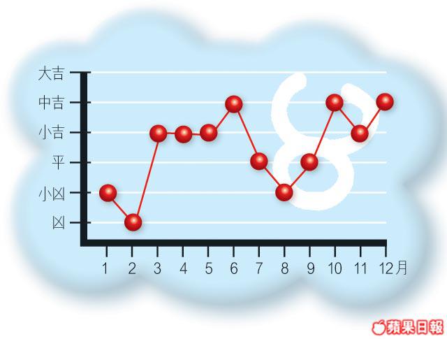 事業:運勢持續向好,若從事自己有興趣的工作,有機會平步青雲。好運至11月中會走下坡,所有計劃宜於上半年落實。