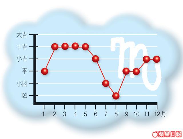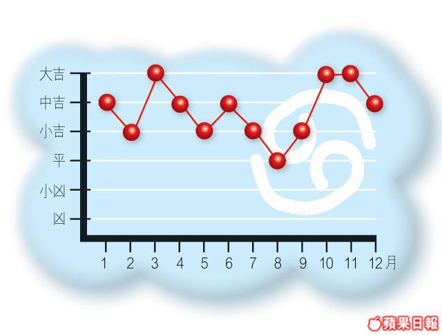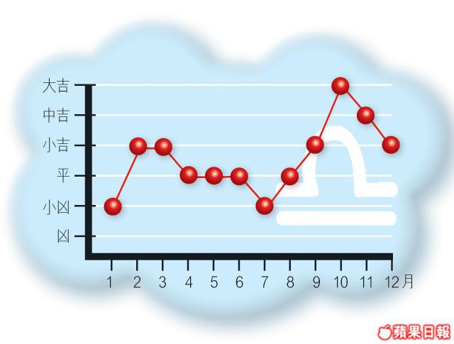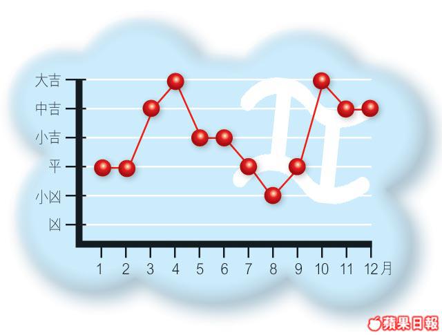 戀愛:戀愛運不錯,於5至6月更有機會展開新戀情。11月後便不宜作任何抉擇,否則會因情緒不定而影響運勢。