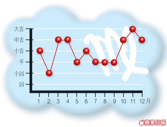 財運:注意4月至8月,因過份自我而影響工作表現,導致出現凍薪或扣花紅等情況。其他月份正財及投資均有平穩的漲幅。