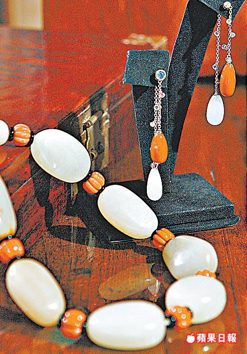 一向重視色彩及不對稱感的羅啓妍,個人招牌造型是永遠穿上一對鴛鴦鞋(左右不同顏色的同款鞋),她說:「色彩對我係一個引導嘅重要元素,所以我好重視色彩。」一條由溫潤和田白玉粒與珊瑚花珠、黑瑪瑙串成的頸鏈,色調對比自然卻不失現代感,正好展示羅啓妍對色彩的巧妙運用。