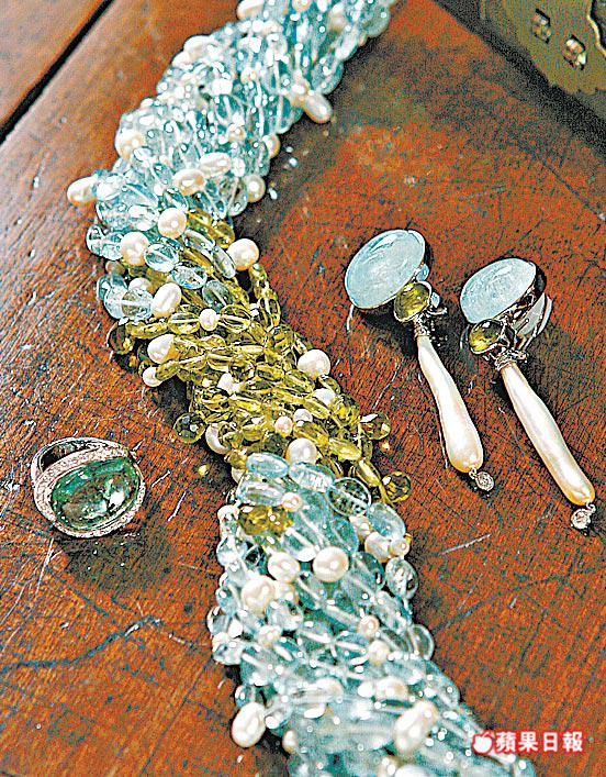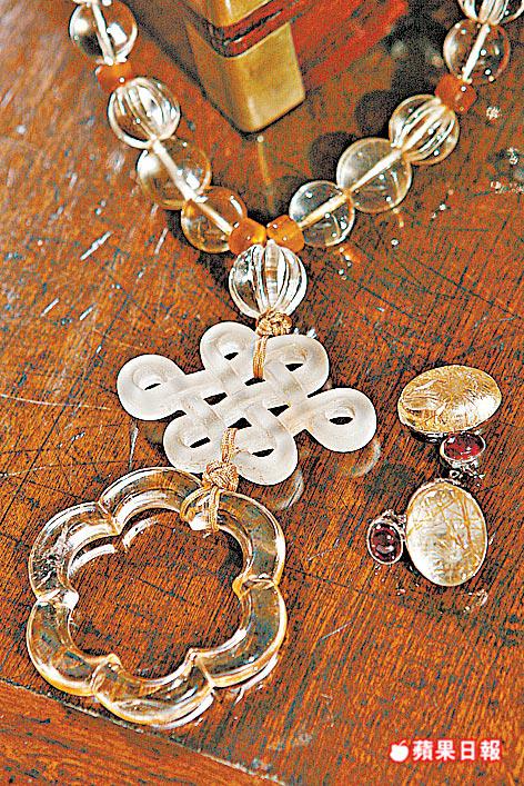 新作中還採用漸變色調,一條由淺綠色橄欖石、淺藍色海藍寶及淡水珍珠串成的頸鏈,組成和諧的漸變色彩,羅啓妍說:「我嘅設計係不對稱,因為用嘅物料太舊,有部份係古董,冇可能搵到齊全,惟有要平衡,平衡大小、色彩,但唔需要對稱。」比如其中一條水晶頸鏈,她就為一件古董遼代六瓣花形水晶,配上佛教八大符號之一的「六耳」水晶掛件及紅石髓珠,做成具中國風味的頸鏈,滲出歷史及文化氣息,她對此說:「文化係好奇怪,當大家以為遼代係冇文化可言,83年發現遼代公主墓,先發現遼代有佢自己嘅文化色彩,所以我近年做文化義工,提倡文化與設計配合。」