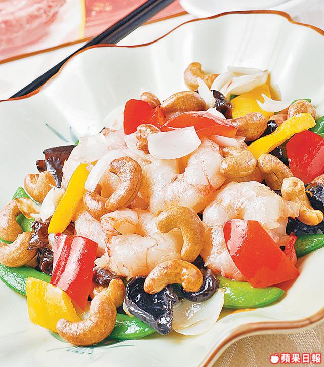 做法︰鷹粟粉、糖、鹽及蛋白醃蝦仁10分鐘;百合汆水;雲耳浸透;腰果慢火泡油;起油鑊炒熟蝦仁,再將蜜糖豆、雲耳和百合炒熟,加蝦仁兜勻,鷹粟粉水埋芡,鋪上腰果即可。
