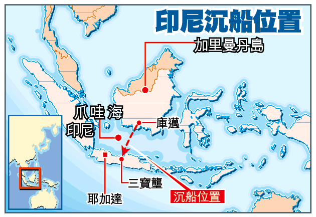輪船於上周五深夜,由婆羅洲(Borneo)的中加里曼丹(CentralKalimantan),開赴中爪哇(CentralJava),但其間海面一個5至6米巨浪翻起,直撲輪船的甲板,未幾港口就收到船長的無線電求救訊號,指船身嚴重損毀翻側,之後船長和大部份乘客就連人帶船沉沒了。